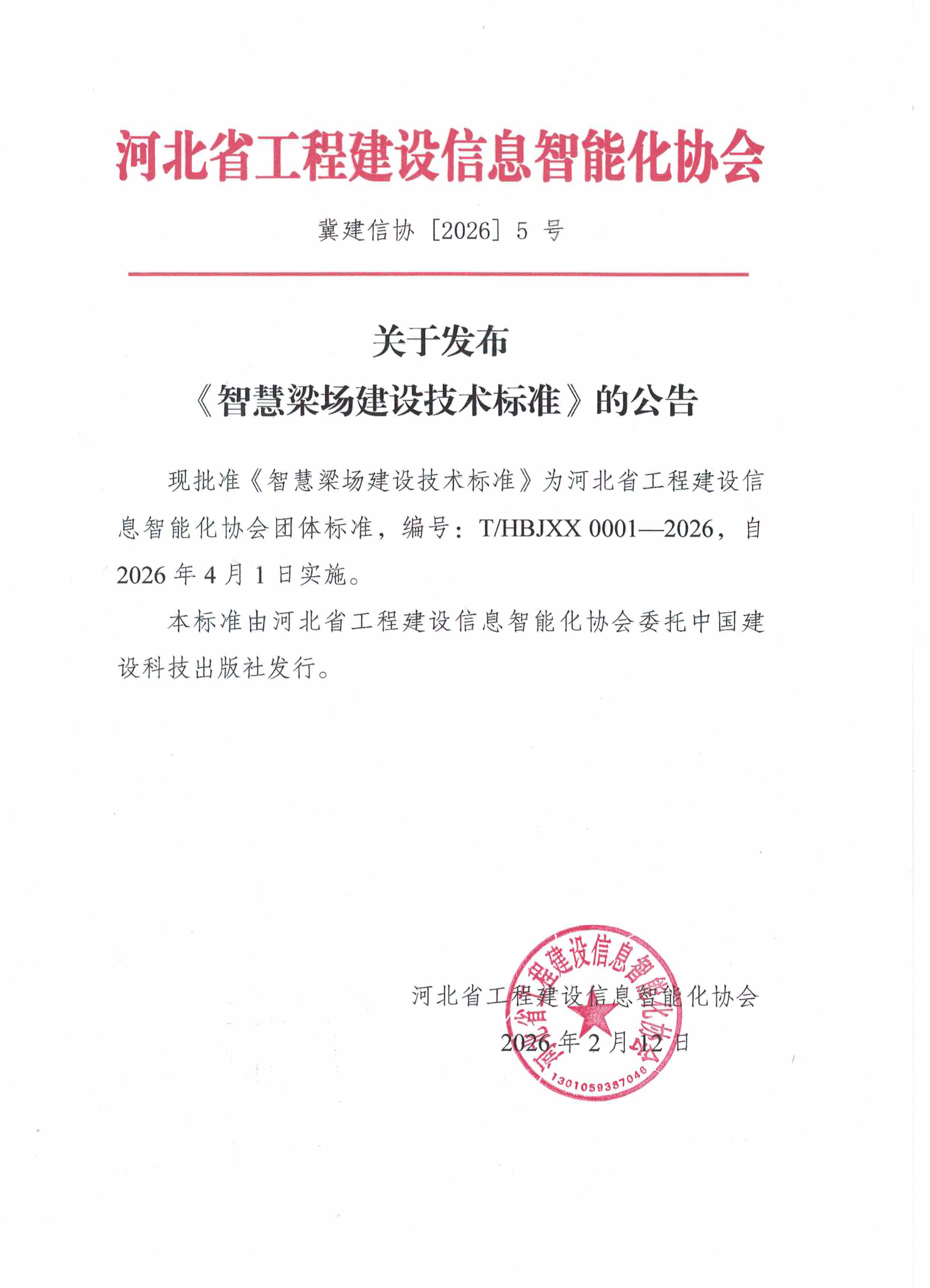 关于发布《智慧梁场建设技术标准》的公告